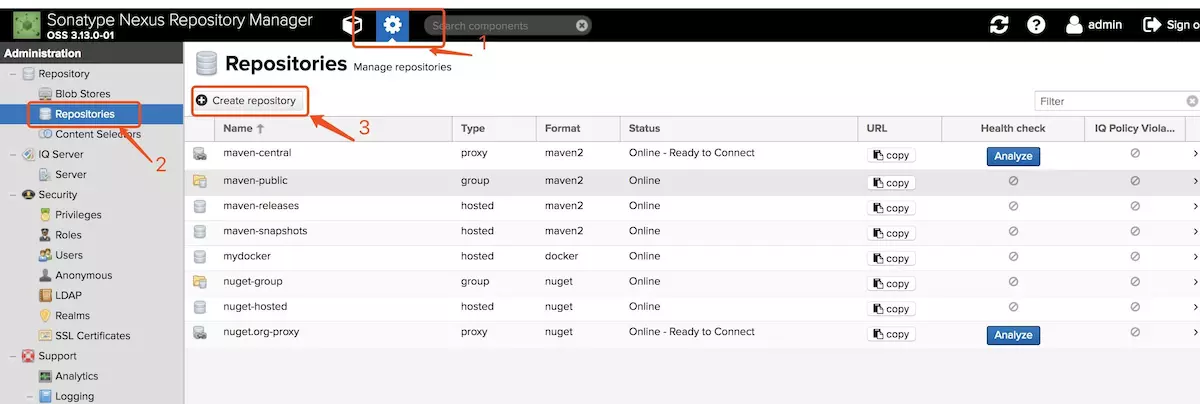 三、登录nexus 设置仓库