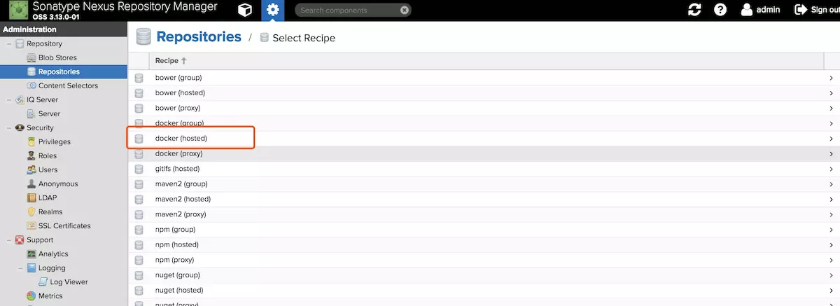 2、选择仓库类型 这里选择hosted类型 如图