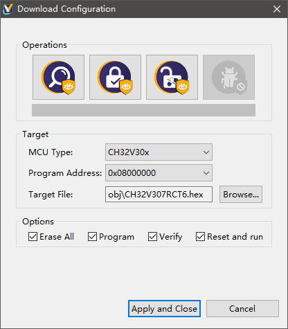 【配合WCH-Link,支持该两种系列MCU的下载、调试功能,下载配置界面如图4所示】