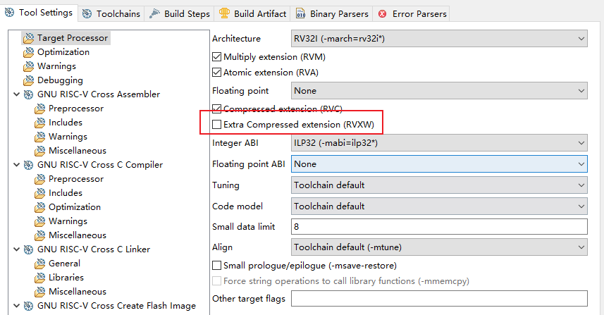 【MRS V1.51增加自定义扩展xw,支持lbu,lhu,lbusp,lhusp,sb,sh,sbsp,shsp的16位压缩指令,设置入口如图9所示】