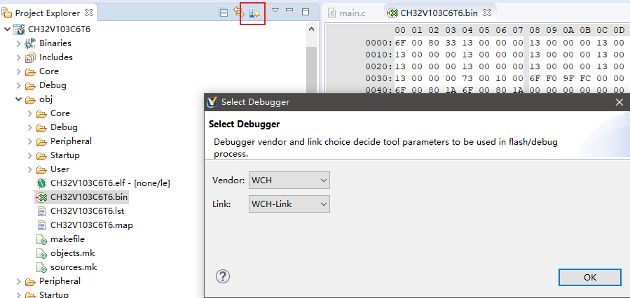 2.合并目标MCU调试器配置功能入口,统一至Project Explorer工具栏内
