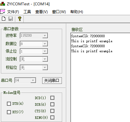 烧录结束后连接串口,复位芯片,观察到打印信息: