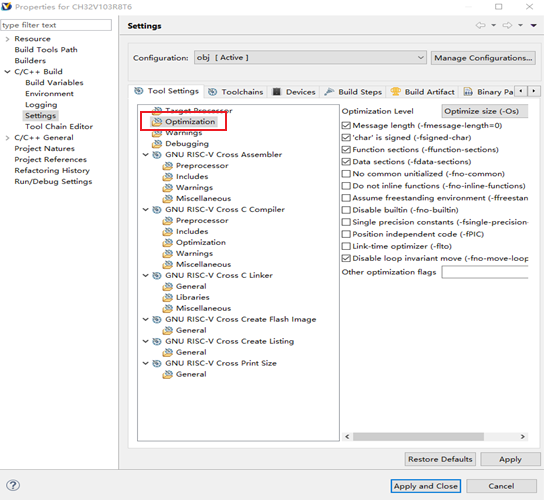 【优化等级】主要是配置GCC的优化选项,想要添加其他优化选项可以写在下方other optimization flags中。