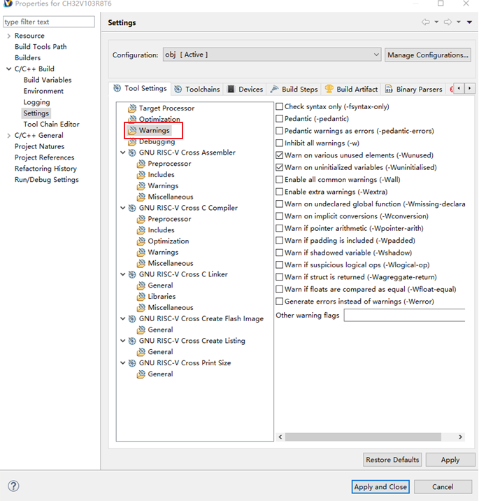 以上就是MRS常用的编译配置,编译之后生成的文件会存在工程目录中obj文件中,其中.list和.map文件可用于对程序分析。
