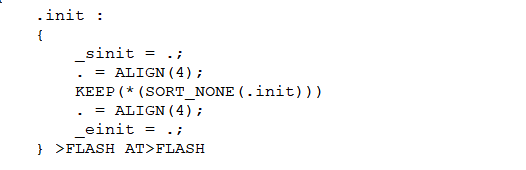 .init输出段,提供了两个符号_sinit和_einit,_sinit为FLASH起始地址,紧接着4字节对齐之后放的是输入段.init,这个输入段可以在start_CH573.S中看到,是起始跳转。