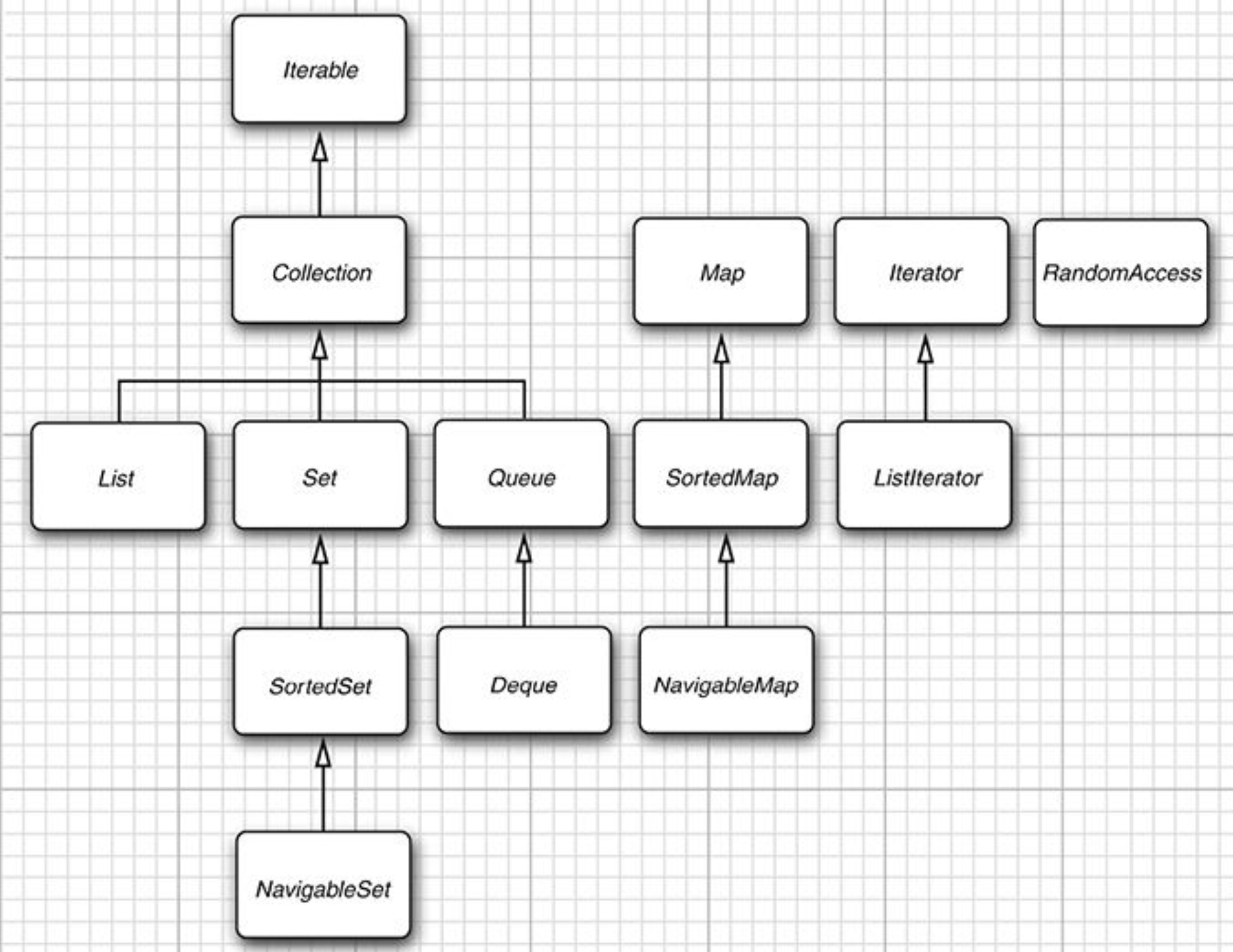 Java6定义了NavigableSet NavigableMap,里面包含了在有序集合和Map中搜索、遍历的方法。TreeSet TreeMap类实现了这两个接口