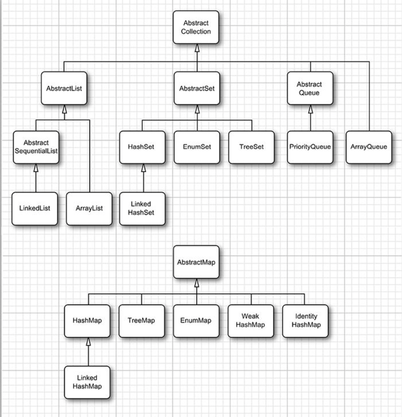 这里,接口不负责实现类的真实效率。其它以Abstract开头的类是为(库)集合的实现者准备的,如果我们想自己实现一个集合的数据结构,那么继承这些类要比直接去实现接口的所有方法更容易