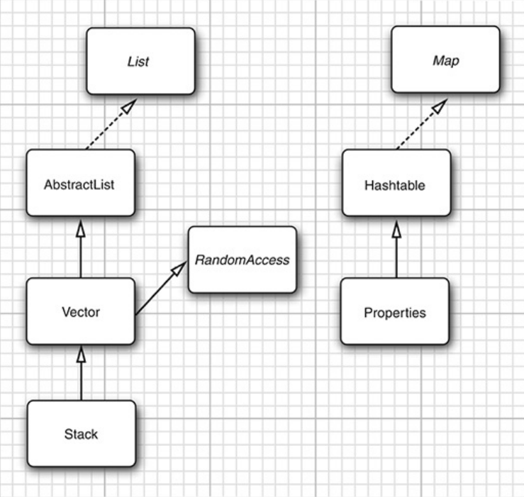 在集合框架存在之前的容器类。它们已经被合并到了集合框架中