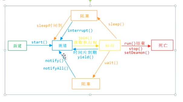 yield():用的少,示意线程让出时间片,然后和其他线程一起抢,可能再次抢到。