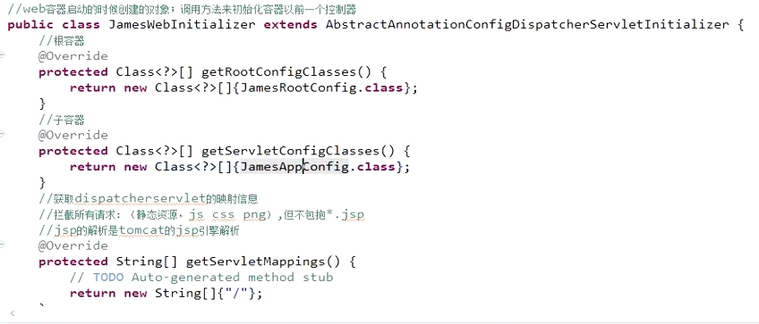 自定义继承AbstractAnnotationConfigDispatcherServletInitializer的类: