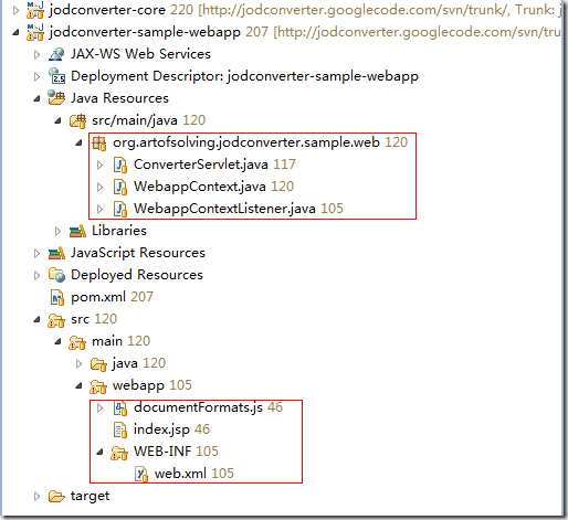 在上一节中,我们从SVN资源库中下载了两个应用,其中有一个是jodconverter-sample-webapp,这个应用就是以Web方式运行OpenOffice文档转换服务的,咱们来打开看一下: