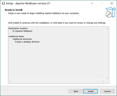 以 Windows 为例,安装 NetBeans 的过程如下:1) 双加 Apache-NetBeans-27.exe 打开安装包,进入安装页面: