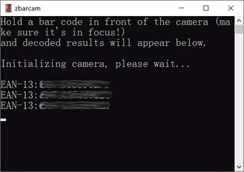 2) 等待摄像头打开,然后展示一个二维码,此时 ZBar 会识别它:
