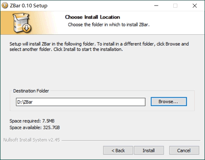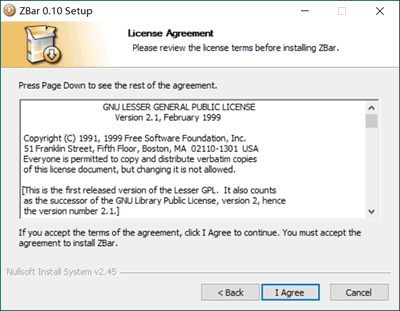 1) 双击下载的 zbar-0.10-setup.exe,弹出下图的窗口: