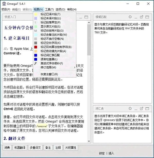 OmegaT 是一款计算机辅助翻译(CAT)工具,名字取自希腊字母最后一个“Ω”,暗示翻译流程的终点。