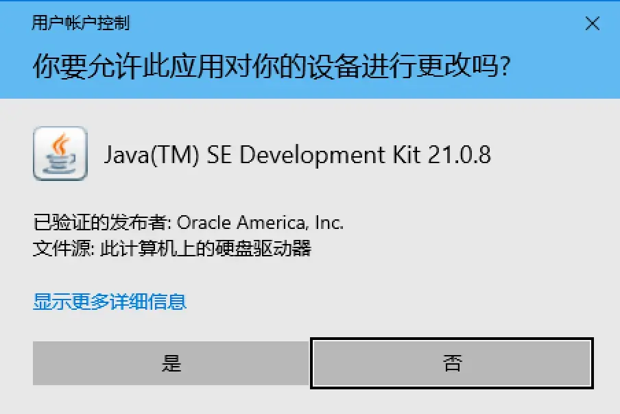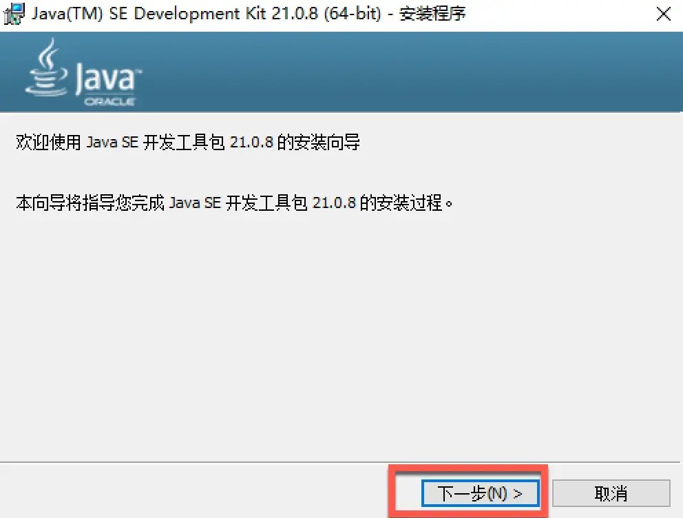1、下载 JDK21 安装包,双击安装: