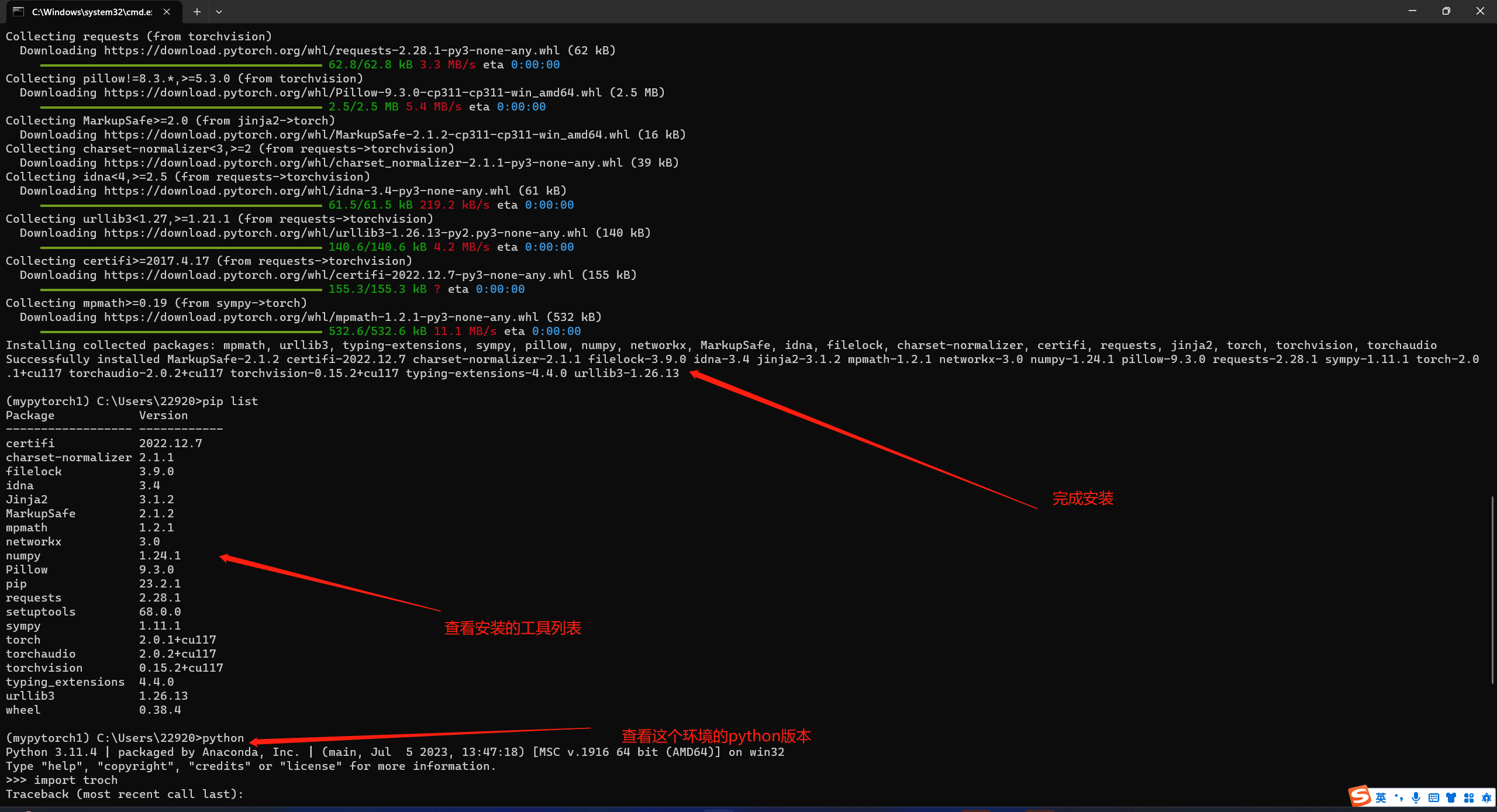 (2) 创建一个开发环境(conda create -n mypytorch1 python=3.11)