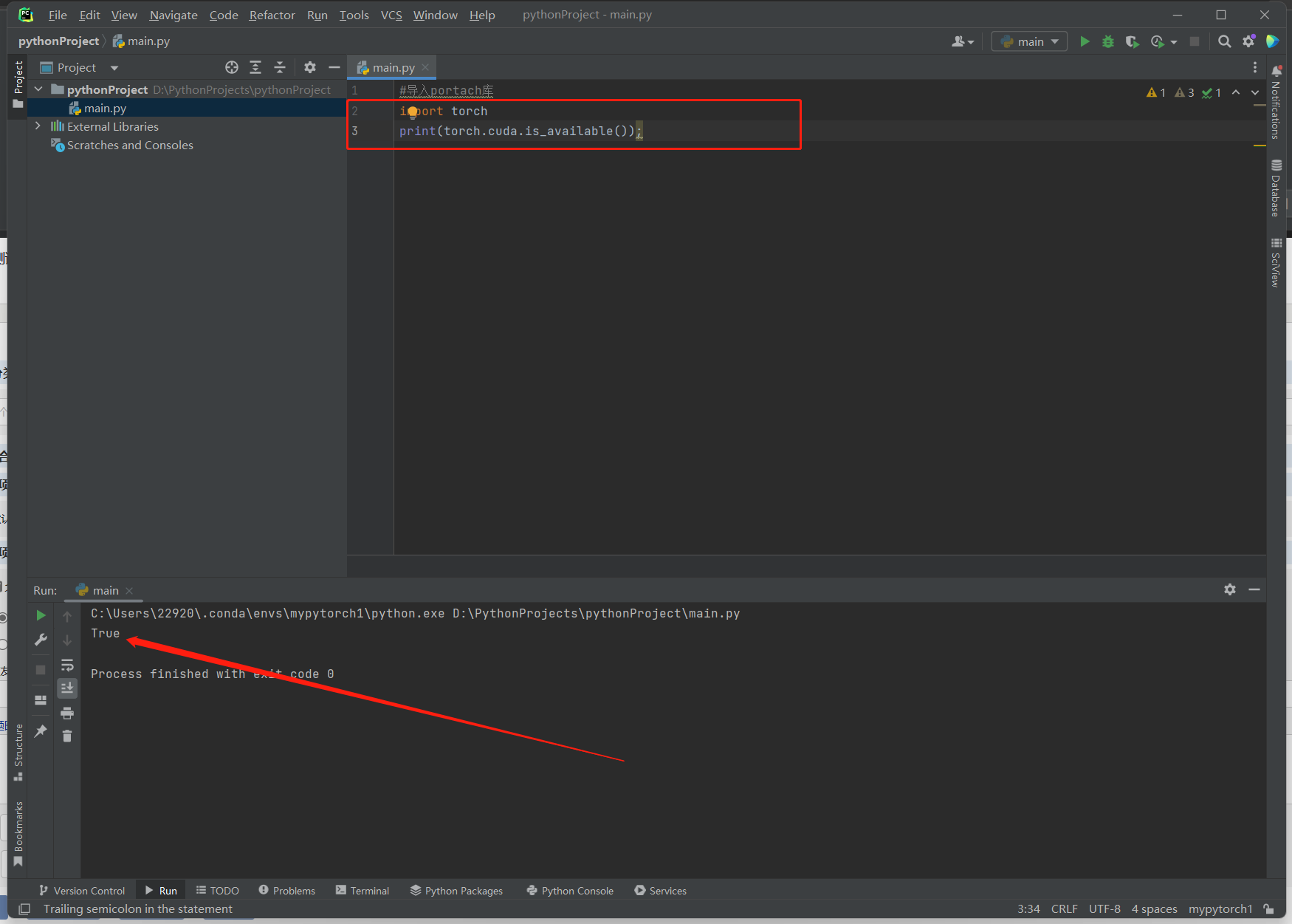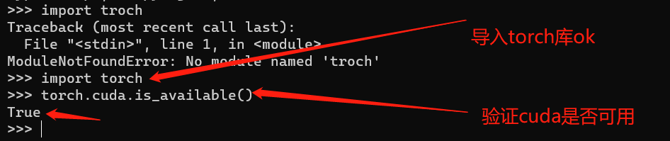 测试是否安装成功,并且验证是否可以使用cuda(提前安装了cuda驱动)