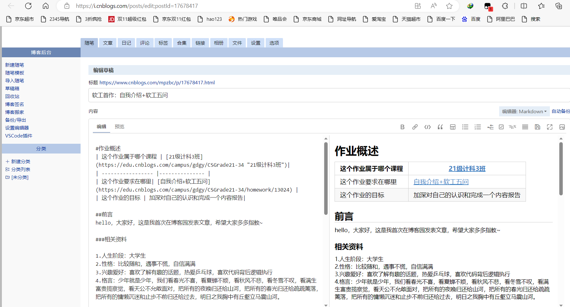 | 这个作业的目标 | 加深对自己的认识和完成一个内容报告 |