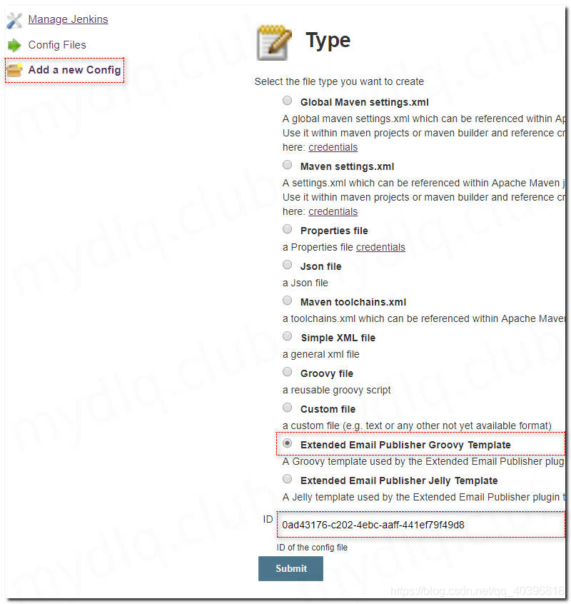 步骤 3 : 点选类型 Extended Email Publisher Groovy Template, 点击 Submit 按钮提交