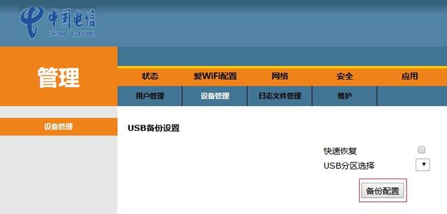 1、将一个FAT32或者NTFS格式的优盘插到光猫的USB接口,然后将光猫的配置文件备份到这个优盘