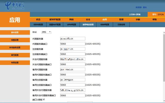 2、因为有固定电话,所以我们重点来看语音电话的相关配置——记住下图中的这些服务器地址和端口号