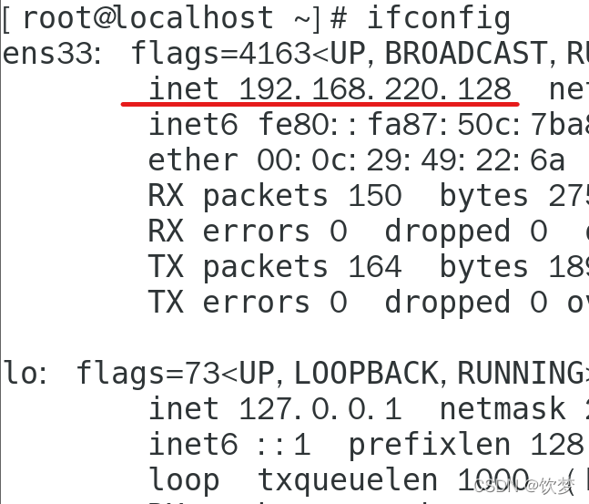 打开Linux的终端输入ifconfig命令查看Linux的ip地址
