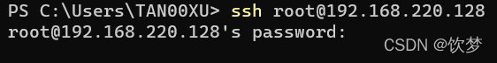 - 输入:ssh+空格+用户名+@ip地址,然后按Enter