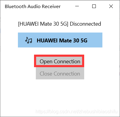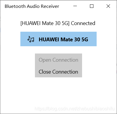 确认二者连接后,打开Bluetooth Audio Receiver软件,将弹出如下图所示的窗口。
