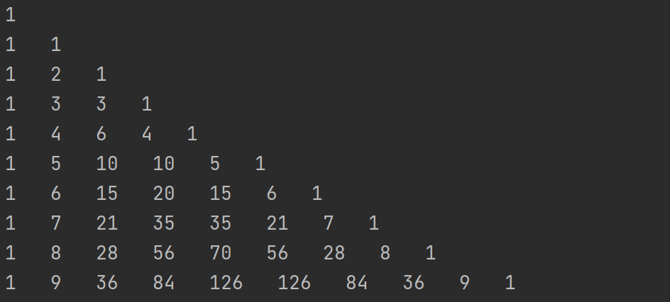 a[i][j]=a[i-1][j-1]+a[i-1][j];