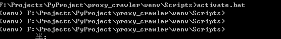 只有激活之后,才算进入该虚拟环境,否则安装包时,依然是安装在全局环境之下。进入Scripts 目录,执行命令:activate.bat 进入虚拟环境,如下图,如果想退出虚拟环境 ,执行命令: deactivate.bat