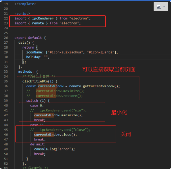 如果在softHead组件上面,获取当前窗口(因为是渲染进程),是不可以直BrowserWindow.getFocusWindow()的,需要在前面new BrowserWindow()一个窗口才行,不然BrowserWindow.getFocusWindow()的结果会为空。