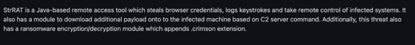 近日微软的安全情报团队发现了新型恶意软件攻击,通过包含恶意的 PDF 附件进行大规模传播。这些 PDF 附件中包含了名为 StrRAT,这是一个可远程访问的木马程序,可用于窃取密码和用户凭证。除了窃取凭证甚至控制系统之外,微软研究人员还发现,这种恶意软件可以将自己伪装成伪造的勒索软件。微软表示:“一旦系统被感染,StrRAT 就会连接 C2 服务器。1.5版明显比以前的版本更加模糊和模块化,但后门功能大多保持不变:收集浏览器密码,运行远程命令和PowerShell,记录键盘输入等等”。