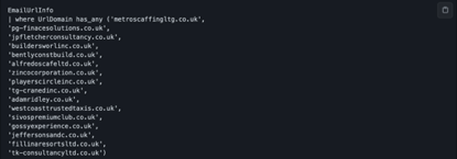 查询邮件中发件人邮箱包含以上域名:* co.uk*的发件人。