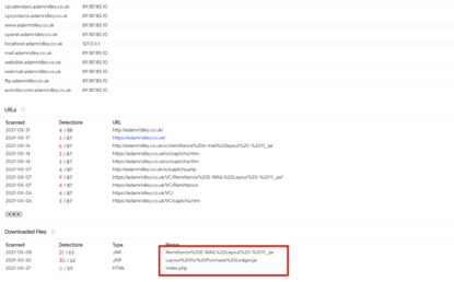 https://www.virustotal.com/gui/domain/adamridley.co.uk/relations