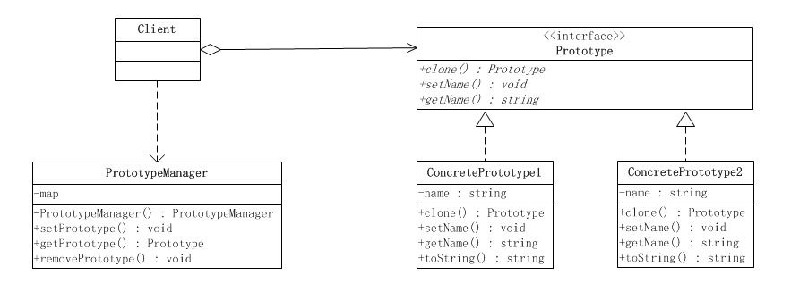如果需要创建的原型对象数目较少而且比较固定的话,可以采取第一种形式。在这种情况下,原型对象的引用可以由客户端自己保存。