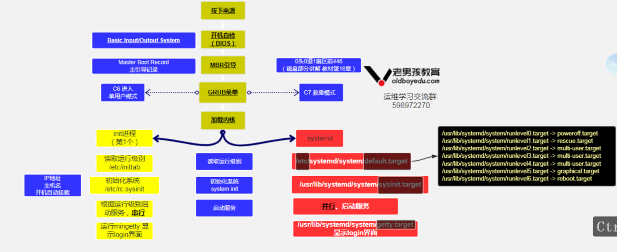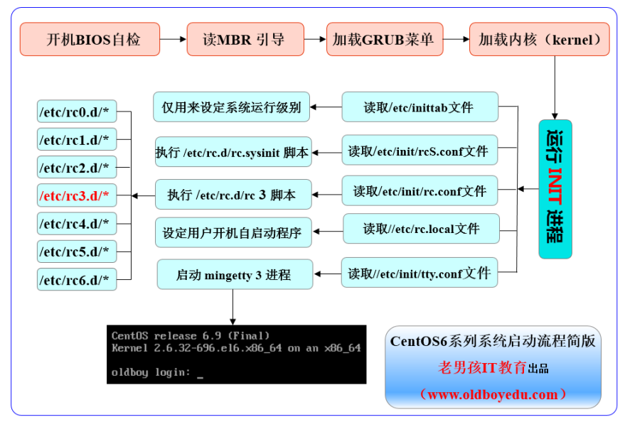 6) systemd执行multi-user.target下的gtty.target及登录服务。