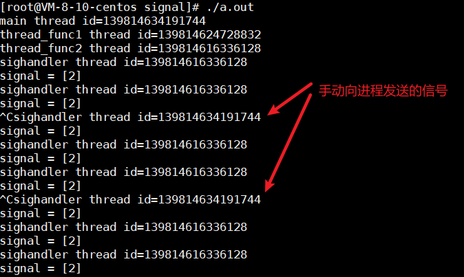 printf("sighandler thread id=%lu\n",pthread_self());//获取当前线程ID