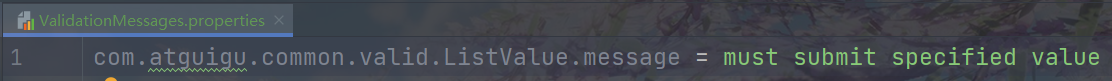 配置文件内容:对应 String message() default "{com.atguigu.common.valid.ListValue.message}"; 代码的内容