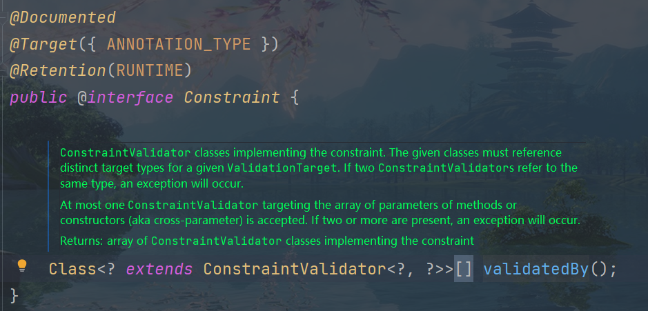 编写的校验器就是自定义注解 @Constraint(validatedBy = {})//用什么校验器来校验 中validatedBy 所需要的值