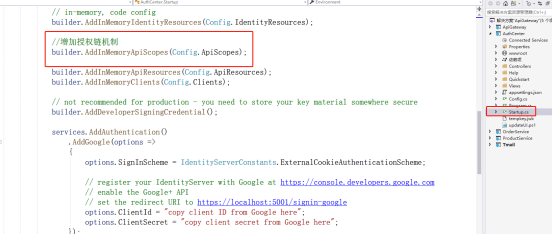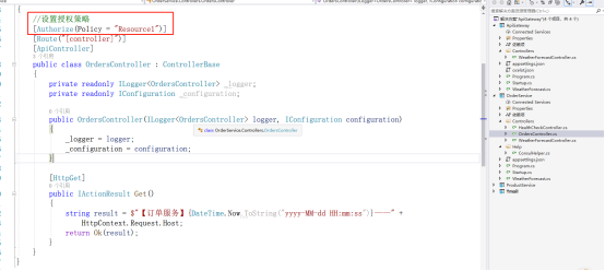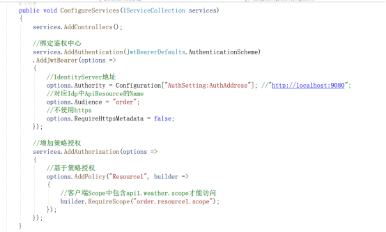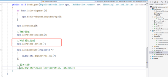 (3)在Startup.cs文件中,增加授权链机制