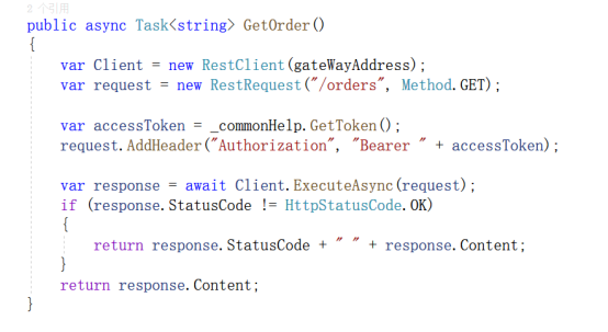 从上图可知,我们还需要新建一个AuthCenter的项目,这里稍等下,我们先把order服务搞定,按照流程图的步骤: