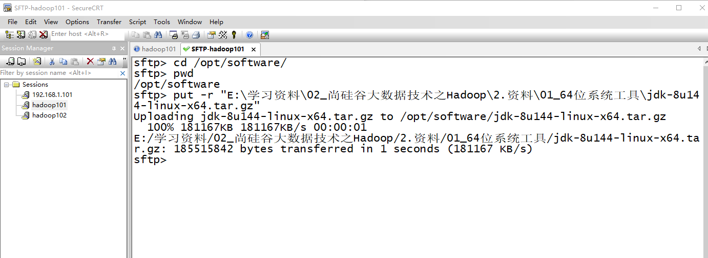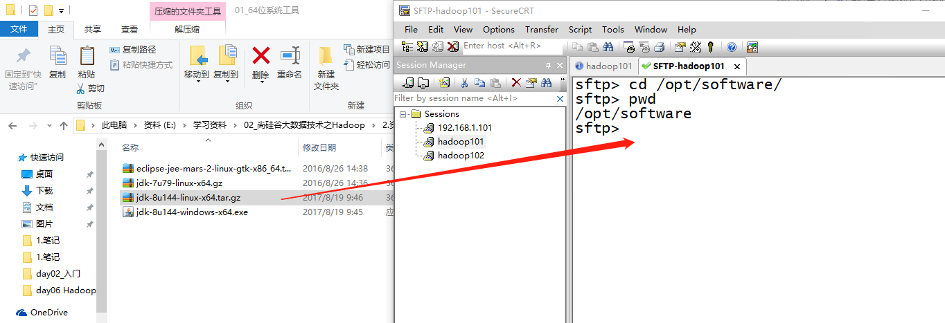 2. 用SecureCRT工具将JDK导入到opt目录下面的software文件夹下面,如图2-28所示