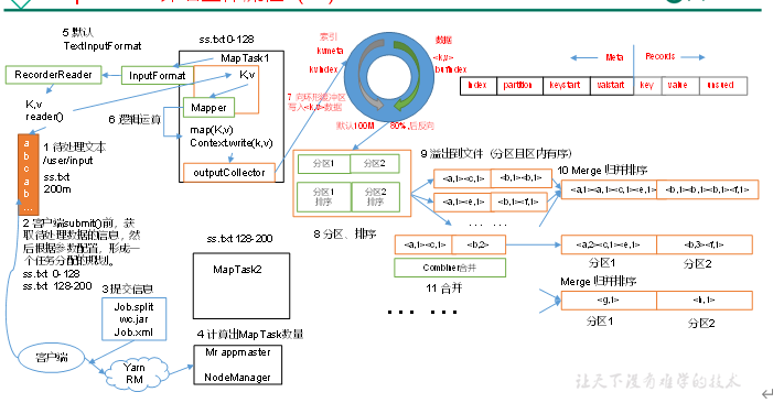 1)Map方法之后Reduce方法之前这段处理过程叫Shuffle
