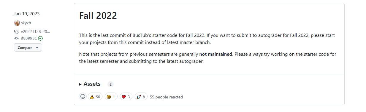 当前已在新的分支bustub-2022-dev上, 并且新的分支是基于Fall 2022版本代码的