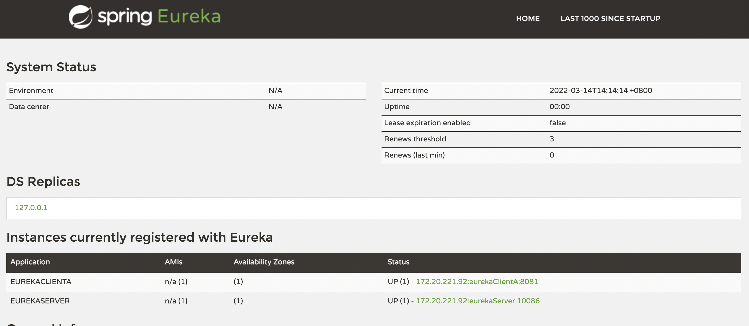 - 启动eurekaServer项目和eurekaClientA项目