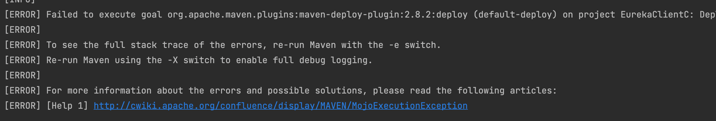 如果没有远程仓库会报错如图1,可以忽略,利用本地仓库。注意:需要在pom中注释掉maven的打包插件,详细看maven_deploy
