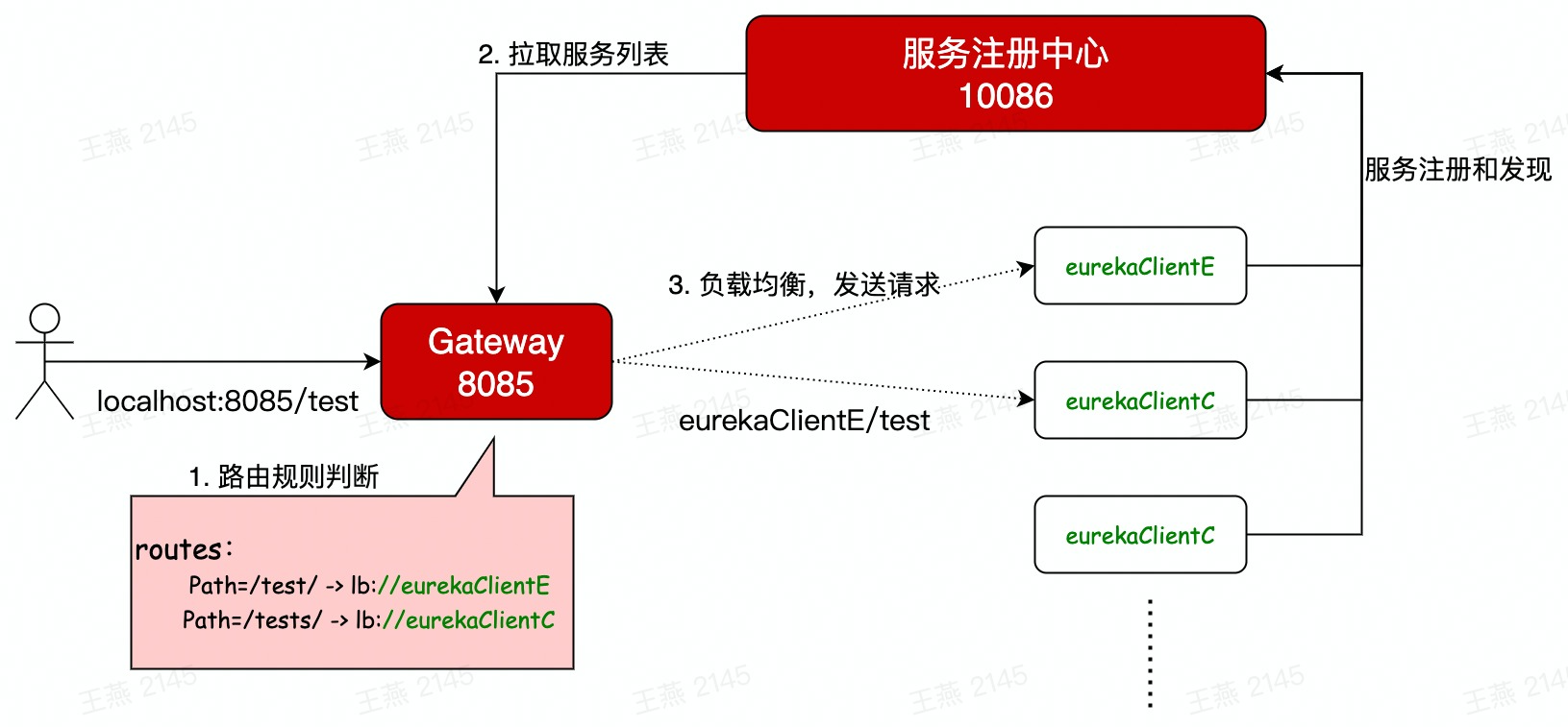 server: port: 8085 spring: application: name: gateway cloud: gateway: routes: #网关路由配置,数组 - id: eurekaClientE #路由ID,唯一标识 uri: lb://eurekaClientE #路由目标地址,lb负载均衡,eurekaClientE服务名称 predicates: #路由断言,有11中,可以按照时间、IP地址.... ,匹配到服务/404失败 # - Before=2023-01-20T17:42:47.789-07:00[America/Denver] #根据时间断言,before某个时间之前 - Path=/test/ #根据路径断言,路径解析为 eurekaClientE/test/ - id: eurekaClientC uri: lb://eurekaClientC predicates: