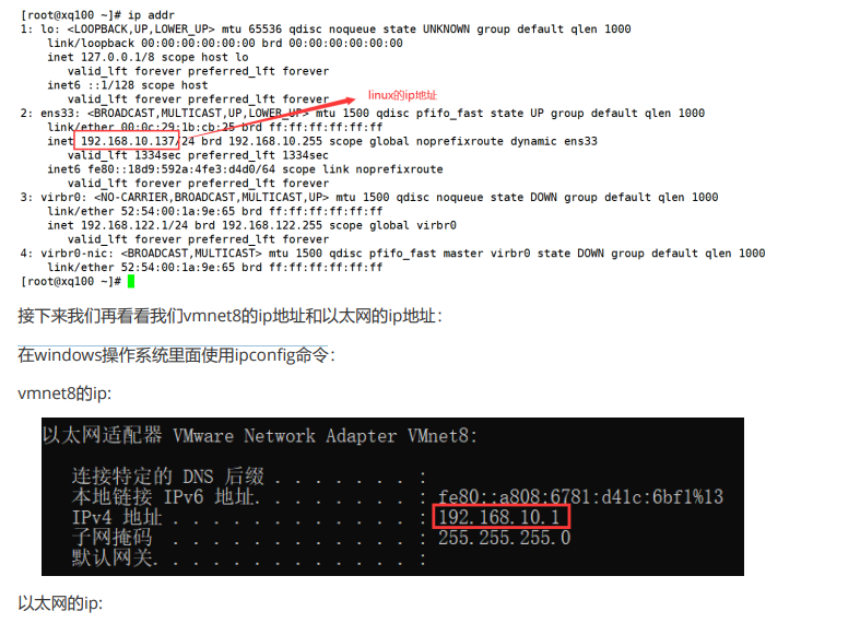 2.查看虚拟机上liunx操作系统的地址