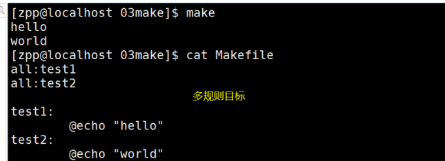 一个规则中可以有多个目标,多个目标具有相同的生成命令和依赖文件